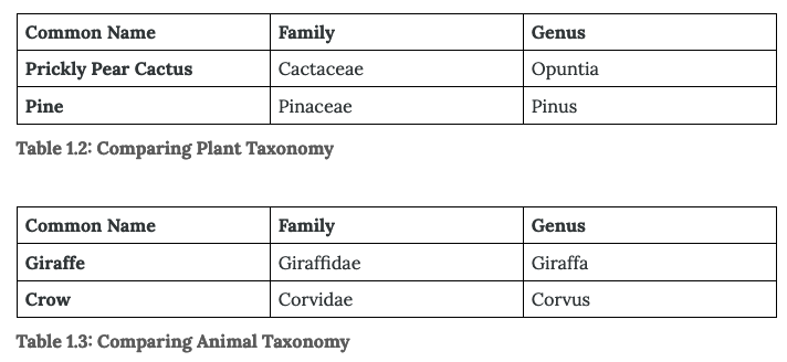- Add table numbers with more descriptive table titles (e.g., Table 1.2: Comparing Plant Taxonomy)